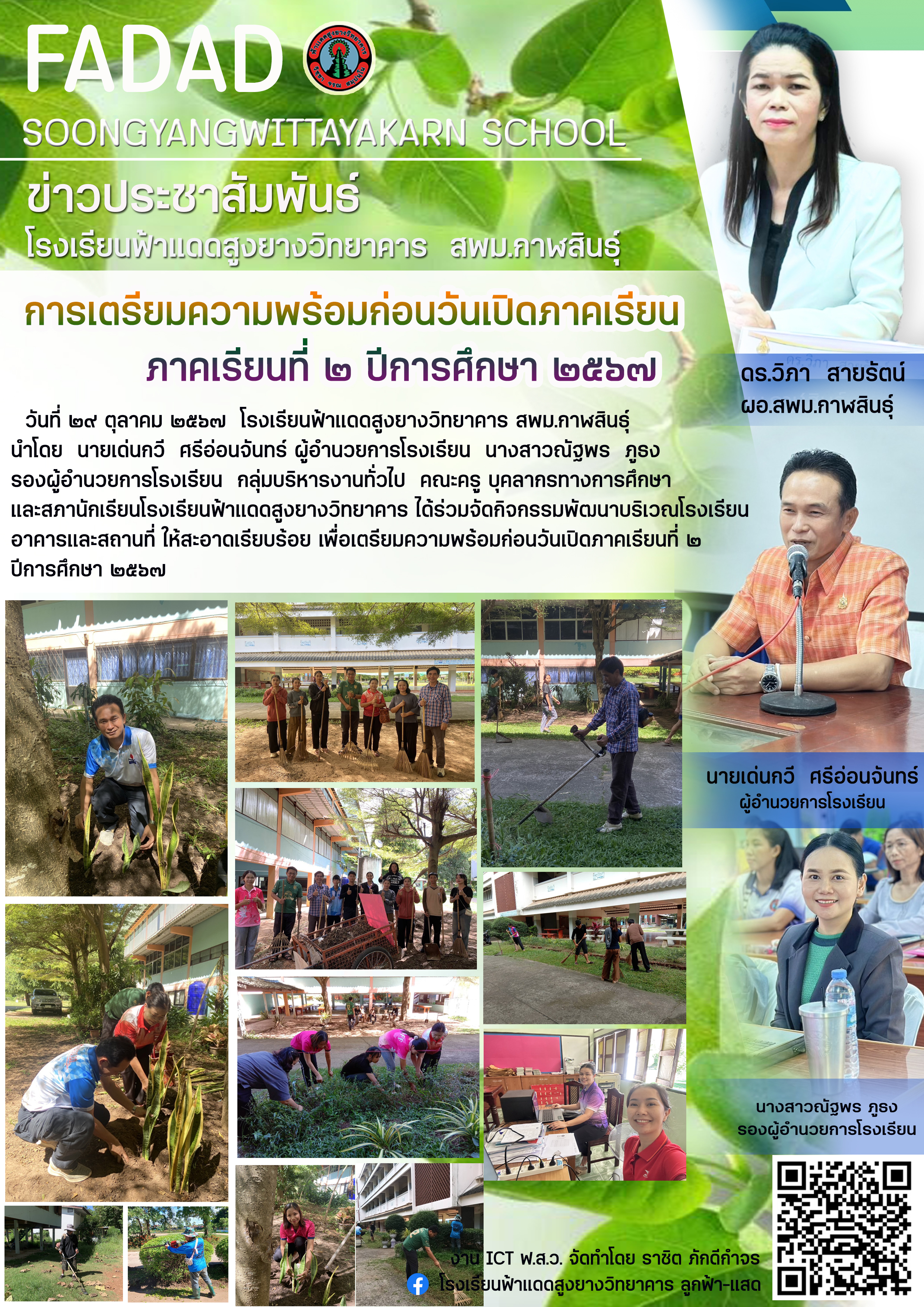 ข่าวประชาสัมพันธ์ โรงเรียนฟ้าแดดสูงยางวิทยาคาร สพม.กาฬสินธุ์ เรื่อง กิจกรรมจิตอาสา ทำความสะอาดบริเวณโรงเรียน เพื่อเตรียมควาทพร้อมก่อนเปิดภาคเรียนที่ 2 ปีการศึกษา 256