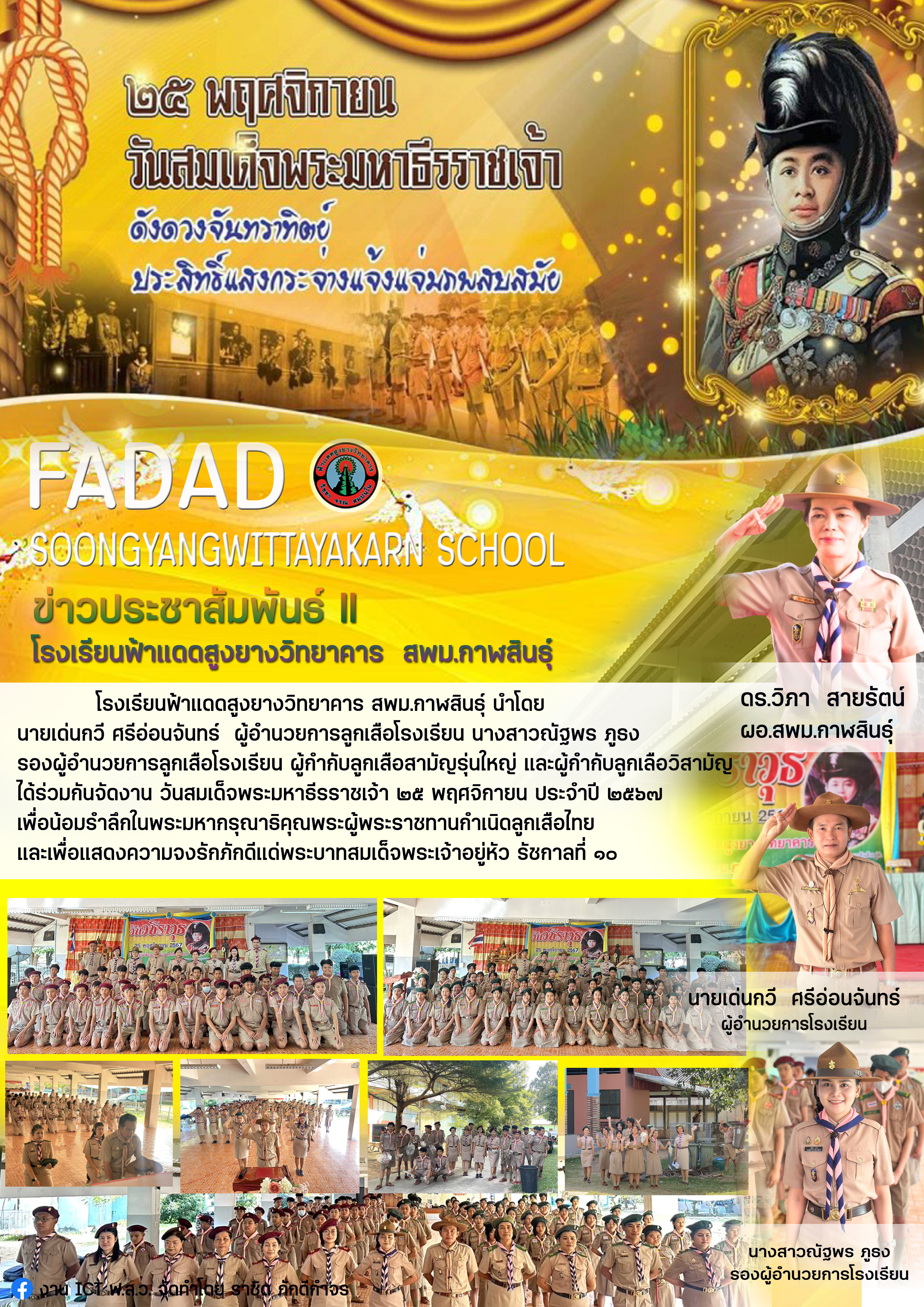 ข่าวประชาสัมพันธ์ โรงเรียนฟ้าแดดสูงยางวิทยาคาร สพม.กาฬสินธุ์ เรื่อง วันสมเด็จพระมหาธีรราชเจ้า
