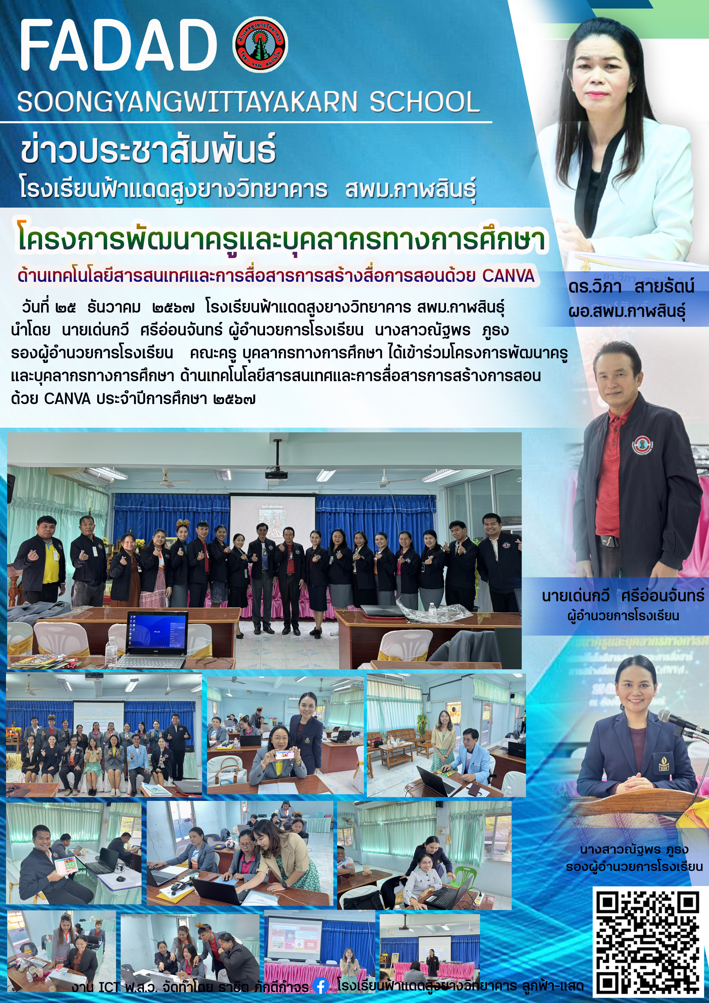 ข่าวประชาสัมพันธ์????โรงเรียนฟ้าแดดสูงยางวิทยาคาร สพม.กาฬสินธุ์ เรื่อง โครงการพัฒนาครูและบุคลากรทางการศึกษา ด้านเทคโนโลยีสารสนเทศและการสื่อสารการสร้างสื่อการสอนด้วย CANVA